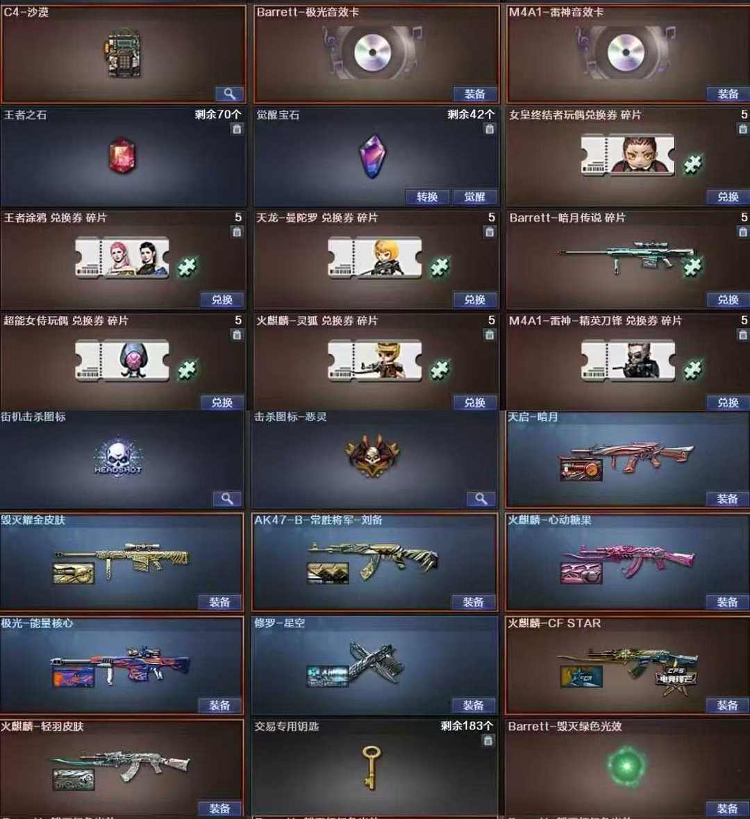 毁号,涉及毁坏虚拟财产罪及计算机安全罪,请文明游戏素质游戏,让我们共建美好租号平台 本游戏账号:英雄武器89个 王者武器10个。 装备齐全拥有完美游戏体验。重要的是特殊装备有:M4A1-雷神、AN94-超新星、黑骑士-海王、幻灵之锋、AK47-火麒麟、Scar Light-白虎、烟雾弹-竞技荣光、高爆手雷-竞技荣光、闪光弹-竞技荣光、柯尔特-竞技荣光、擎天-竞技荣光、M200-竞技荣光、USP-雷暴、荣耀世冠-火麒麟、荣耀世冠-柯尔特、荣耀世冠-龙啸、M200-幻神、M4A1-黑骑士、AK47-黑武士、M4A1-黑龙、AWM-天龙、M4A1-雷霆、雷霆之契、雷霆之锋、加特林-炼狱、Barrett-毁灭、QBZ03-金色蔷薇、麒麟刺、火麒麟-绝迹、王者星霆、炫金火麒麟、王者之魄-觉醒版、王者之心-觉醒版、王者之武-觉醒版、王者之怒-觉醒版、炫金雷神、炫金骑士、王者之势-觉醒版、黄金猫猫手套-白鲨、B.C-Axe-CFS、Knife-CFS、枪王之刃、猫猫手套、魂·Barrett-金色蔷薇-蛇姬、魂·QBZ03-金色蔷薇-蛇姬、灵·QBZ03-金色蔷薇-嘉年华、