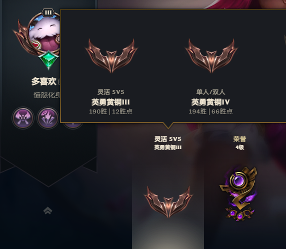 段位:122级 英勇黄铜IV
