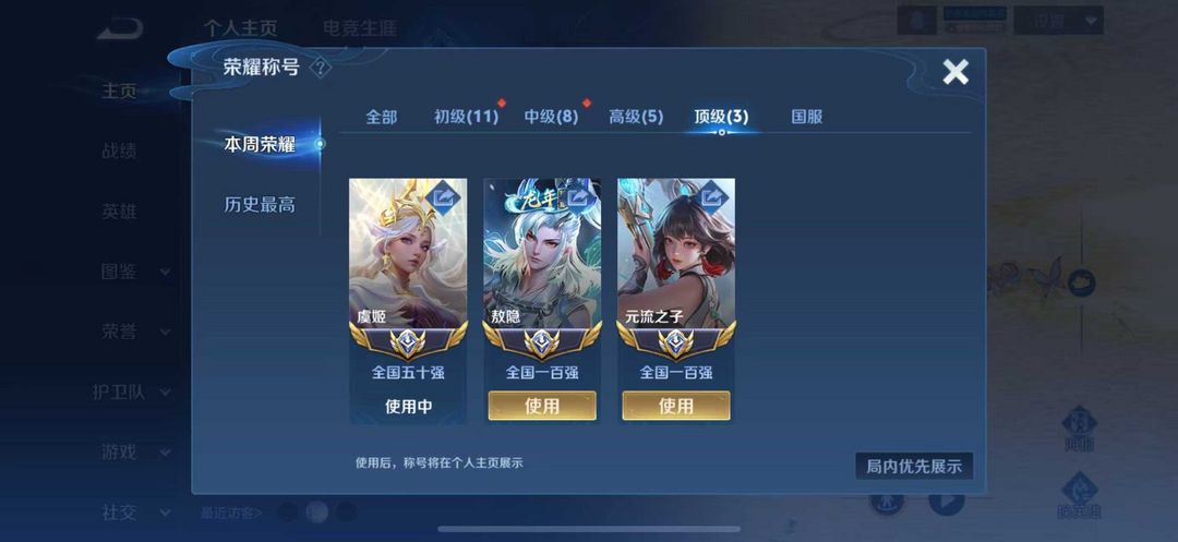 巅峰千强752名闪电框⭐️小国虞姬省标元流之子敖隐在榜⭐️可排位禁巅峰