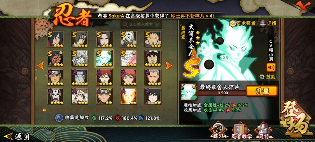 侠隐佐助与专属老鹰 忍战卡卡西已秒♦30s♦六尾鸣人♦夏日黑土♦漂泊带土♦大筒木舍人♦熊猫