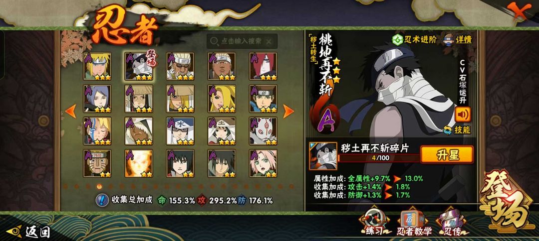 秽土鼬43S丨78A天道超仙人兜秽土斑271忍者 安卓 535区 2000万战力 217万攻击轻松带秘境团本 30S~ 全s忍者 58A~七夕阿斯玛已秒,暴怒带土全套时装奥义已出 鸡翅佐助已出 晓创生歇已秒 除黄土忍战凯外全A忍 商店全奥义图 648秽土四代奥义图 168忍战小樱奥义图 168仙人兜奥义图 168忍战我爱罗奥义 168木叶丸奥义图 168秽土迪达拉奥义图 168须佐佐助奥义 永久雨忍村背景 永久砂忍村背景 全通灵兽 全98通灵