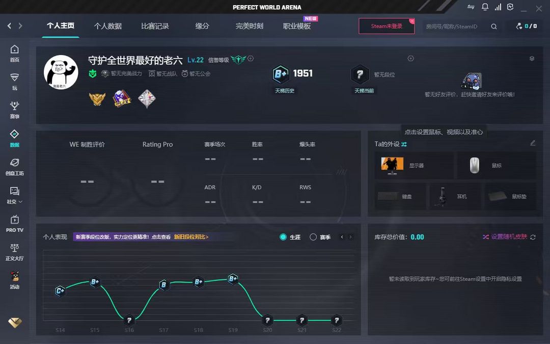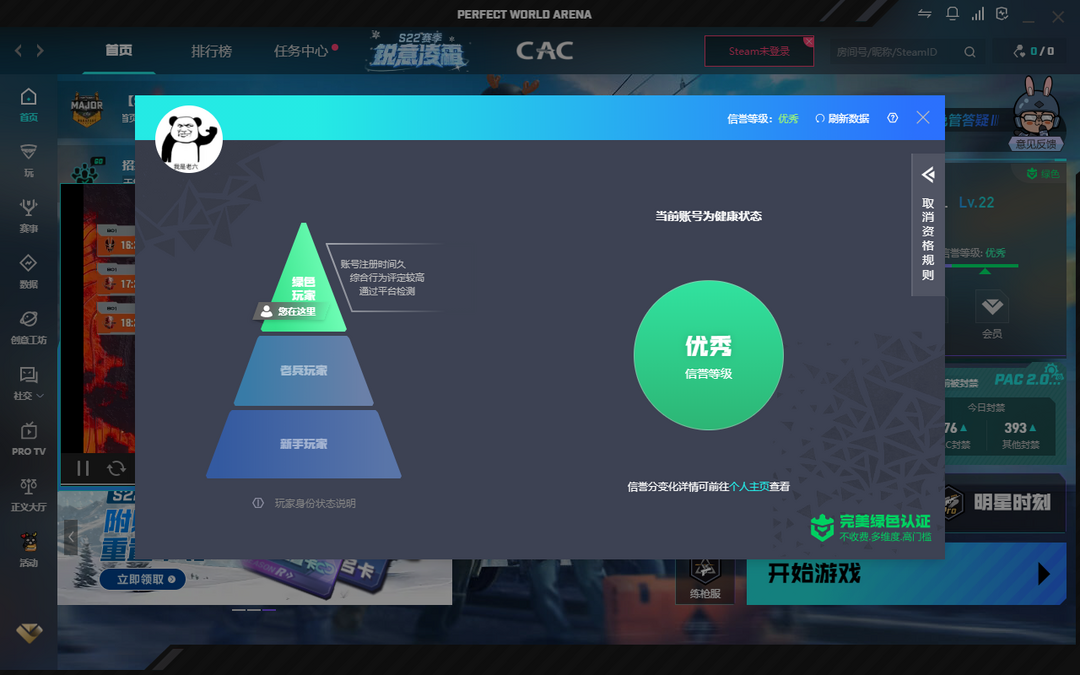 csgo2-完美绿色认证账号-完美段位未定级-完美等级22-低分炸鱼还请手下留情